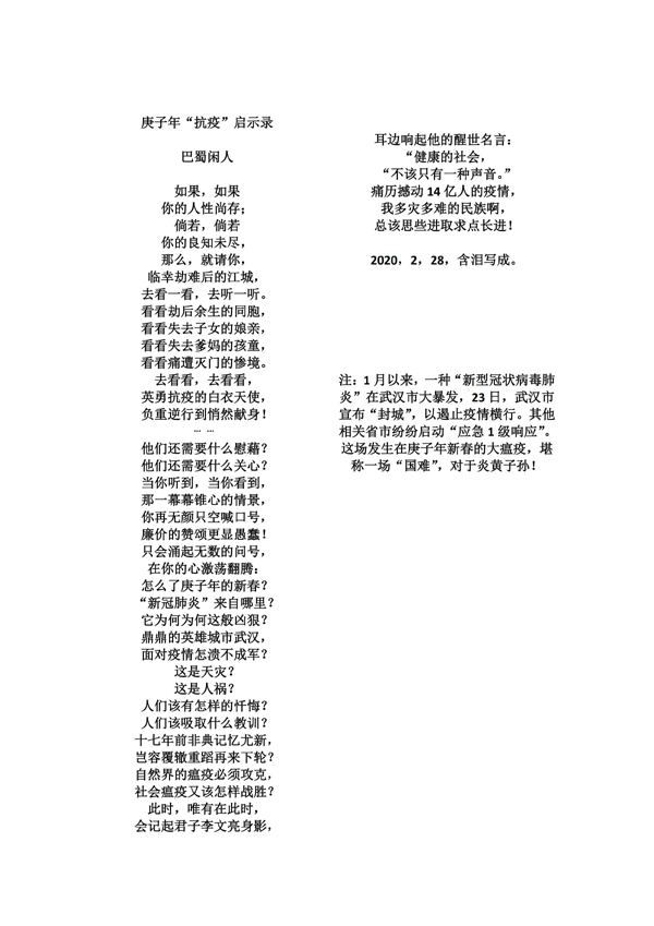 庚子年“抗疫”启示录
