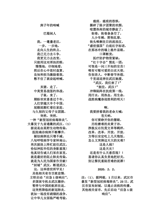 庚子年的呐喊